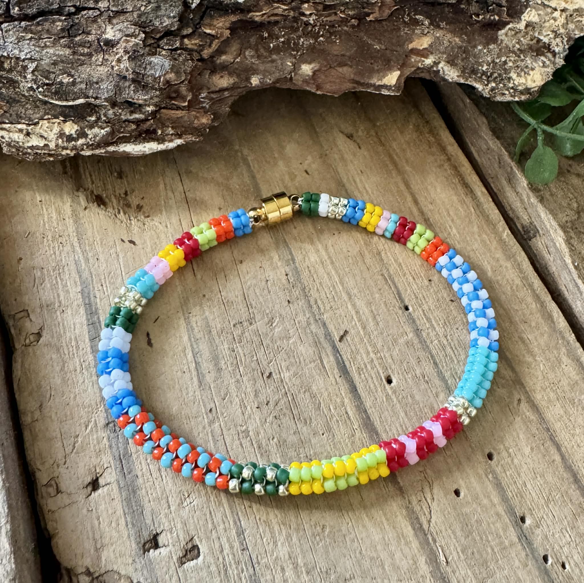 Bright Patchwork Seed Bead Bracelet – Custom Fit with Magnetic Clasp